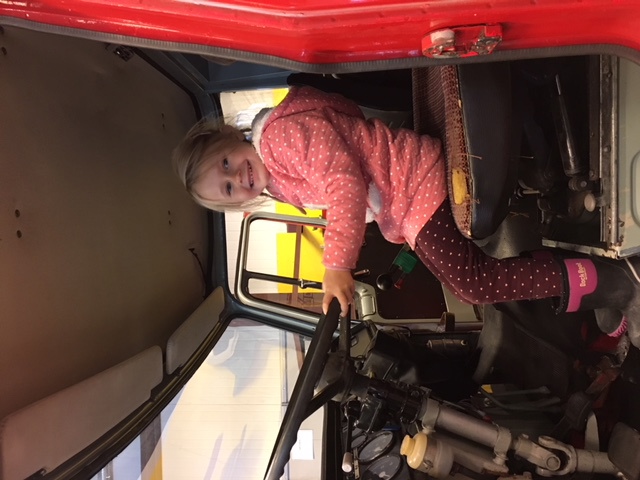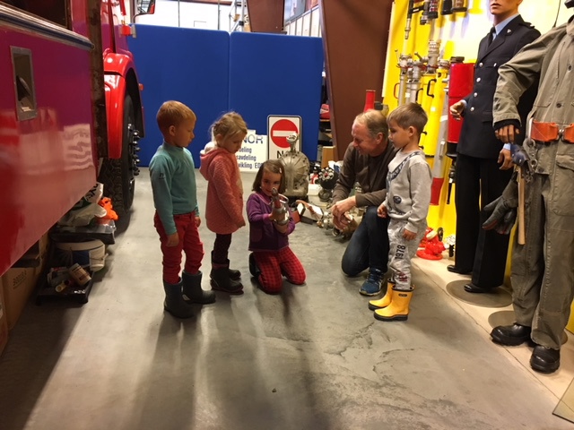 Først var det leik i fortøyningsbåten som "ligger fortøyd" utenfor museet. Deretter pratestund i 2.etg på museet, og litt sang, bl.a. om "Olle Bolle-trollet på Mongstad. Etterpå var det besøk i museumssalen, hvor det som alltid er brannbilen som er i skuddet. Der er jo sirener, blålys og allting!