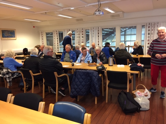 I museets 2. etasje ble det servert kaffe, og gjestene hadde med seg lefser og kaker som ble fortært til film og foredrag om Mongstad. Etter denne seansen gikk turen ned i utstillingslokalet hvor guider fra museumsgjengen fortalte litt om det som er utstilt der. Etter en times tid gikk turen videre til Radøy med en liten stopp på Utvandrermuseet, og deretter matøkt på Smidt pensjonat på Manger.