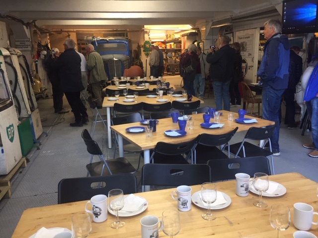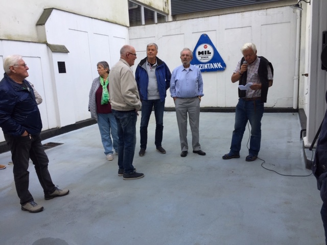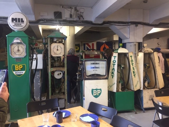 Vi var ca 20 personer med på turen der noen hadde ektefeller med. Besøket på den gamle «MIL-stasjonen» var en flott opplevelse. Stasjonen ble senere til BP-stasjon og deretter til Statoil-stasjon, men er nå tilbakeført til sin opprinnelige utforming, og med utstyr fra 1926. Stasjonen og samlingen der blir drevet av 10 – 12 pensjonister, og på stasjonen er det samlet ulike pumper og utstyr fra bensinstasjoner, like tilbake til 1920-tallet. Interessant å se. I underetasjen på stasjonen var det dekket flott kaffebord, hvor vi fikk servert boller og kaker til kaffen.